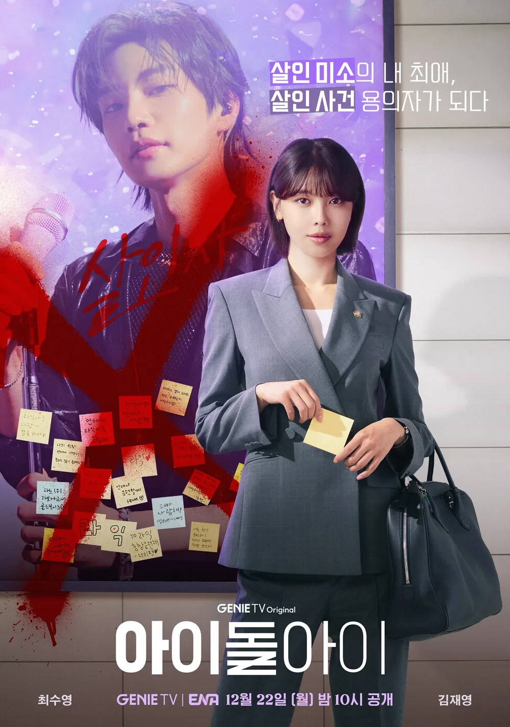 2025년 말부터 시청자들의 관심을 받고 있는 ENA·Genie TV 오리지널 드라마 <아이돌아이>는 법정과 미스터리, 로맨스가 결합된 새로운 스타일의 장르물입니다. 제목만 보면 ‘아이돌 이야기’처럼 느껴지지만 실제로는 법정 서스펜스와 심리적 갈등, 팬과 스타의 관계를 통해 다층적인 이야기 전개를 보여줍니다.
